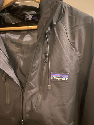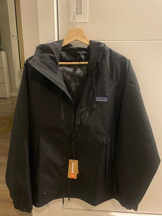 Chubasquero o cortavientos de la marca Patagonia en color negro. Ideal para protegerse del viento y la lluvia. - Diseño con capucha. - Bolsillo frontal con cremallera. - Cierre de cremallera completo.