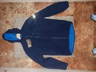 Chubasquero con capucha, ideal para protegerse de la lluvia y el viento. Su forro interior de color azul proporciona un extra de calidez. - Cierre de cremallera. - Capucha ajustable. - Bolsillos laterales. Precio negociable