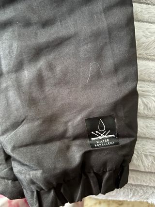 Abrigo chubasquero de nieve Decathlon en tonos negro y gris. Ideal para actividades al aire libre en nieve es impermeable, y abrigado por dentro. es ligero. Sin estrenar. talla6 años 115-124cm - Cierre de cremallera frontal. - Capucha integrada. - Bolsillos laterales con cremallera.