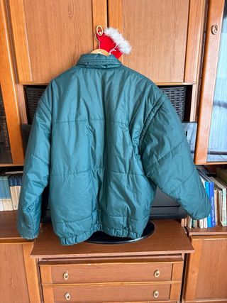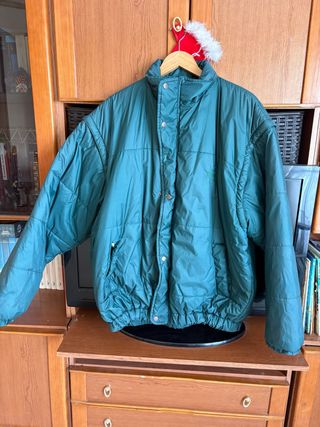 Chaqueta impermeable de color verde, talla XXL. Diseño acolchado con cierre de botones. Las mangas de pueden quitar. - Cuello alto. - Bolsillos laterales.