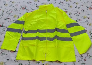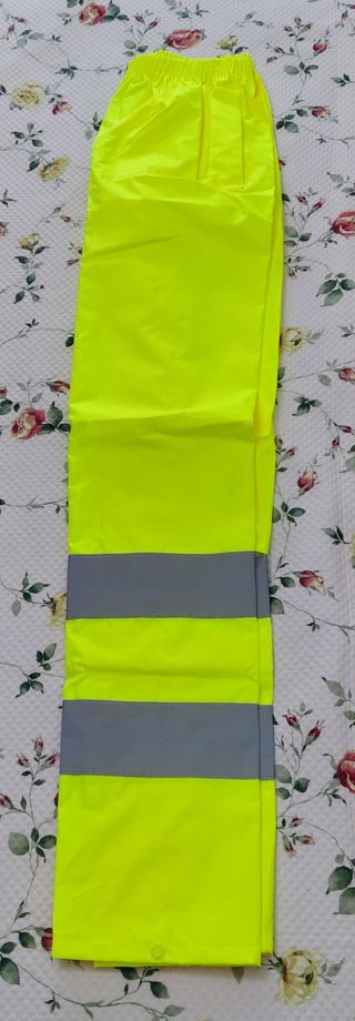 Traje de lluvia Worko sin estrenar, con detalles reflectantes para mayor visibilidad. Talla M. - Cremallera frontal. - Dos bolsillos delanteros. - Puños ajustables. - Cintura con cordón ajustable.