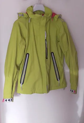 Cortavientos ligero con detalles en color lima. Se vende ya que no es mi talla. - Cierre de cremallera frontal. - Cuello alto. - Logo de la marca en el pecho.