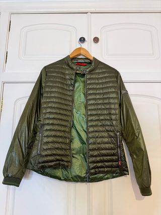 Plumífero Frieda & Freddies New York verde oliva – Talla 38 / S Plumífero de la marca Frieda & Freddies New York en talla 38 (equivale S), en muy buen estado Color verde oliva por fuera y verde satinado por dentro, con detalles en rojo que le dan un toque moderno • Acolchado térmico ligero pero muy calentito • 6 bolsillos interiores (3 a cada lado) — ideal para organización • 2 bolsillos exteriores con cremallera • Cremallera frontal + botón en el cuello • Forro suave y confortable • Estilo casual y funcional, perfecto para otoño–invierno Precio original estimado: 119–169 € Precio Wallapop: 65 € 📦 Envío rápido 🚚
