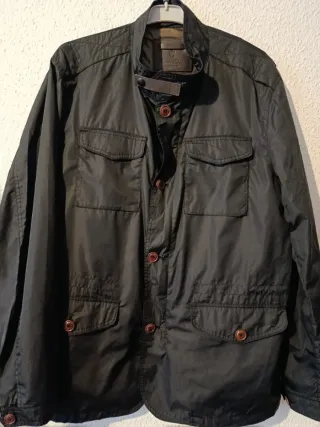 Cortavientos de la marca Massimo Dutti en talla XXL. Diseño moderno y funcional. - Cierre de botones. - Bolsillos frontales con solapa. - Cuello alto con detalle de correa.