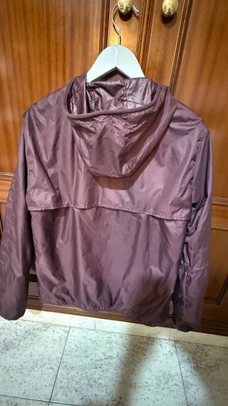 Chubasquero con forro polar. Con capucha. Talla M. De la marca Quechua del Decathlon. Nuevo. Sin usar. Color burdeos. - Cierre de cremallera. - Forro interior. - Tejido ligero.