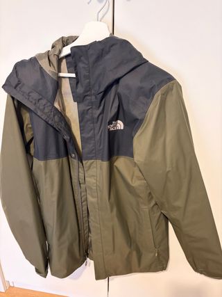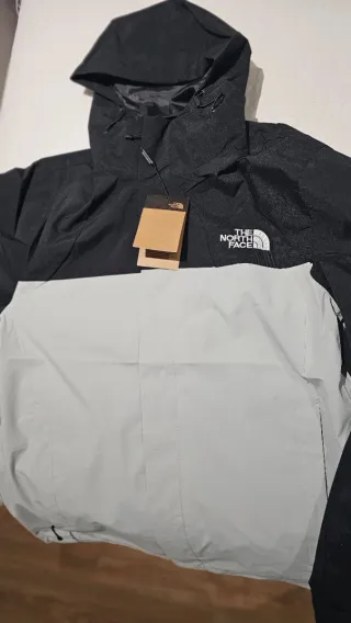 Cortavientos / chubasquero de The North Face. No es un abrigo, es más bien cortavientos impermeable. El articulo talla bien (una L). De todas formas, en las últimas fotos se ven bien las medidas. - Diseño bicolor en negro y gris. - Capucha ajustable. - Cremallera frontal. Está sin estrenar, con su etiqueta y bolsa. Comprado en Jako. Lo vendo por lo que me costó, así que por favor, NO ACEPTO OFERTAS