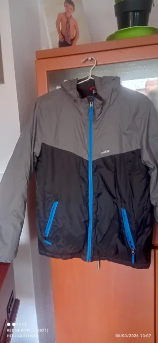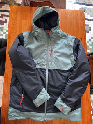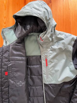 Chaqueta impermeable de la marca Quechua, ideal para la nieve. Diseñada para mantenerte abrigado y seco. - Color gris y negro. - Capucha integrada. - Bolsillo con cremallera. - Indicación de temperatura: -10°C / 14°F. Poco uso, como nueva.