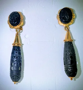 Elegantes pendientes con un diseño tallado único. - Elaborados en palo de santo tallado a mano. - Detalles en oro.