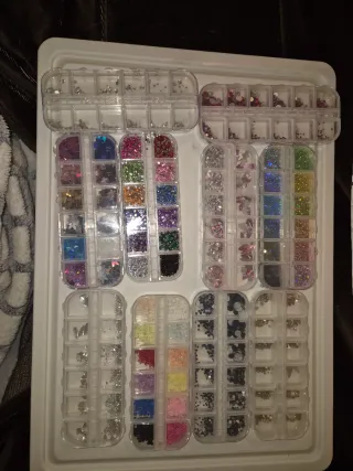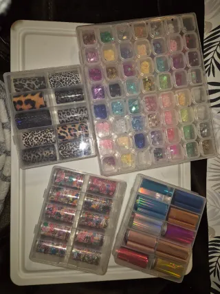 Lote de productos para manicura. ¡¡ TODO SIN USAR !! Esmaltes de manicura 24 Decoraciones: purpurina, charms, efecto flúor... Ultrasonido y cabina de esterilizacion. Tips para gel X y dual form Fresas nuevas a estrenar Más accesorios. Todos sin usar. Se vende en pack, también se puede juntar con el pack de lifting de pestañas.