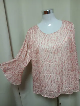 Costó 57€ en tienda y está agotada Blusa elegante y cómoda con un diseño único. - Estampado de puntos en tonos rosa y blanco.