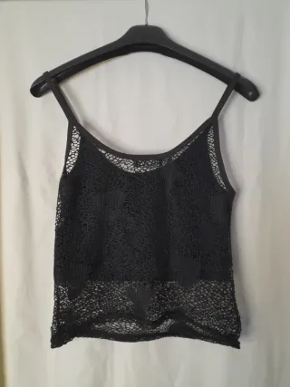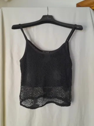 Camiseta de tirantes con un diseño de malla calada. - Tejido ligero y transpirable. - Detalle de encaje en el bajo. C11