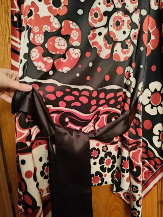 Elegante blusón con un llamativo estampado, ideal para eventos combinado con un pantalón blanco o negro. El cinturón negro ajusta en la cintura. - Diseño con motivos florales y lunares. - Incluye un cinturón de satén para ajustar. - Tejido con caída y brillo.