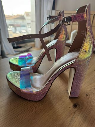Zapatos de vestir morados con detalle dorado