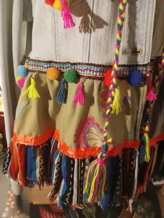 PIEZA ÚNICA Y EXCLUSIVA DE ALTA SASTRERÍA, IMPECABLE SUPER BONITA.Como chaqueta,cazadora,americana,o abrigo exclusivo para mujer TALLA XL con un diseño único espectacular. Es una pieza diseñada por mí exclusiva. Estilo boho chic.Todas las piezas de pasamanería están realizadas a mano. Corte tipo Chanel muy favorecedora que se adapta muy bien a los cuerpos curvy, realizada en tela de twett de lana, cierra con corchetes ocultos,grandes solapas de bolsillo que le aportan carácter a esta pieza. Se adapta muy bien a las formas con una tela suave y amorosa. MEDIDAS: HOMBRO, PECHO Y LARGO.47*60*70 . TENGO MÁS DISEÑOS EN MIS ANUNCIOS