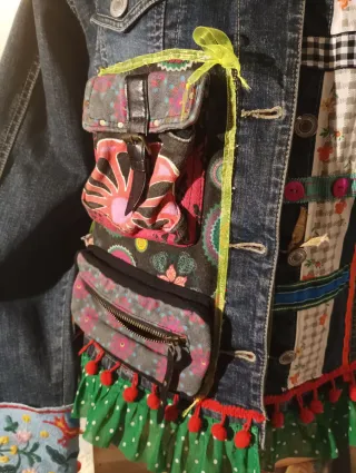Diseño exclusivo y único, súper bonita cazadora estilo Boho chic realizada por mí,nueva a estrenar.Tiene un corte tipo torera muy favorecedor.La tela es un poco elástica adaptándose bien a las formas del cuerpo curvy, Talla XL,curvy,over size,medidas: 46 hombros,60 pecho,60 largo. Talla XL. TENGO MÁS DISEÑOS EXCLUSIVOS DE ROPA,BOLSOS,COLLARES REALIZADOS POR MÍ EN LOS ANUNCIOS.