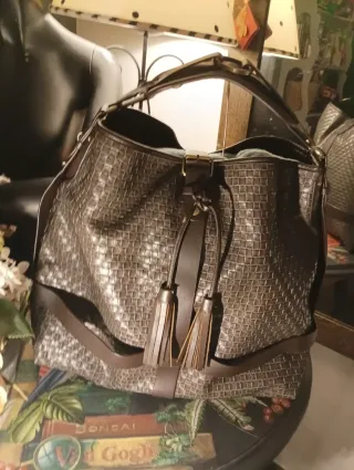 Elegante bolso tote con un diseño de simil cuero trenzado en marrón chocolate. Bolso de mano o de hombro. Tiene un diseño súper bonito, tamaño oversize de 60 x 60. IMPECABLEMENTE CONSERVADO. MÁS BOLSOS COLLARES Y ROPA EXCLUSIVA EN MIS ANUNCIOS.