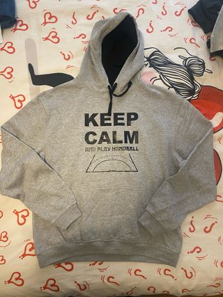Sudadera gris sin estrenar con estampado Keep Calm and Play Handball. - Talla XL (es un corte amplio). - Material: Algodón y poliéster.