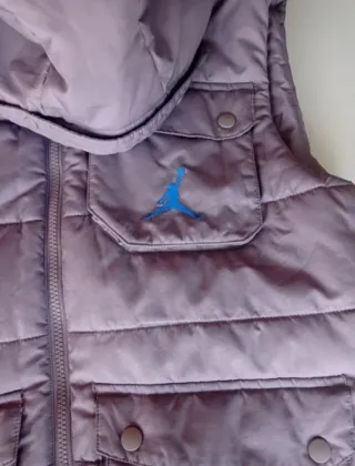 Chaleco acolchado Jordan con capucha. - Cierre de cremallera frontal. - Dos bolsillos delanteros con solapa y botón. - Logo de Jordan bordado en azul en el bolsillo superior derecho. - Inscripción JORDAN en la capucha.