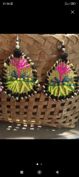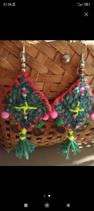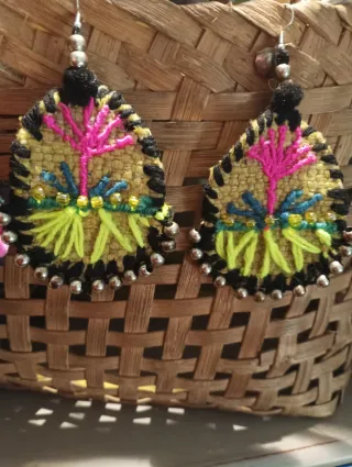 Pendientes artesanales con un diseño único y colorido. Puestos quedan muy bonitos. Ahora de momento me quedan estas dos parejas hasta que haga una nueva producción.PODRÁS VER MÁS ACCESORIOS DE ROPA,ANILLOS, PULSERAS, BOLSOS, CALZADO, ABRIGOS, CAZADORAS, GORROS ....DISEÑADOS POR MÍ Y EXCLUSIVOS.