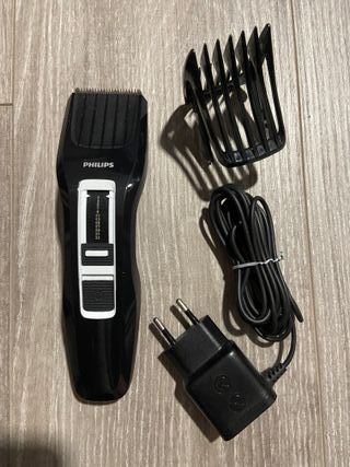 Cortapelos Philips Serie 3000 en color negro. Incluye accesorios para un corte personalizado. - Cabezal de corte. - Peine guía. - Cargador.