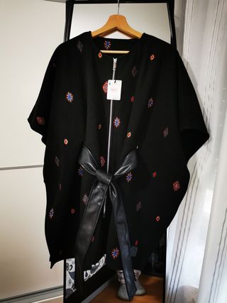 Poncho con cinturón negro de cuero. Sin estrenar.