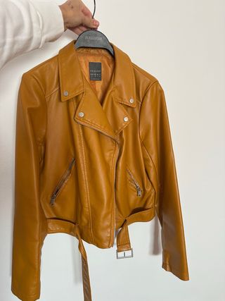 Chaqueta polipiel efecto cuero naranja Talla M