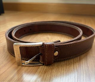 Elegante cinturón de cuero. - Hebilla metálica plateada. - Diseño clásico y versátil.