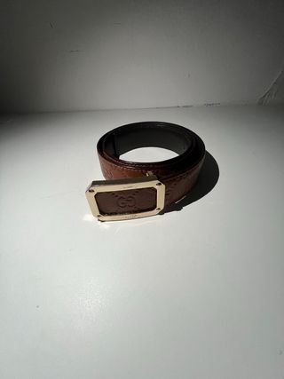 Cinturón de cuero con el distintivo monograma de la marca. - Hebilla metálica dorada. - Diseño repujado. - Material: Cuero.