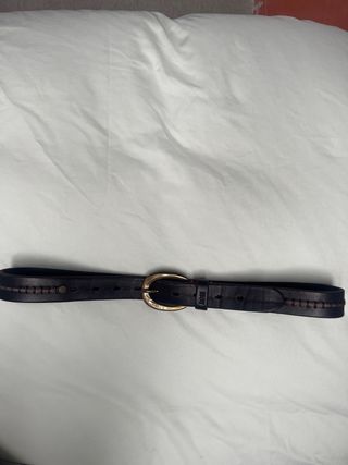 Elegante cinturón de guarnicionería de la marca Lopez de Sevilla en color cuero de 1.16 cm. x 3 cm. de ancho. - Color marrón con detalles dorados en la hebilla dorada made in Italy. - Diseño clásico y versátil.