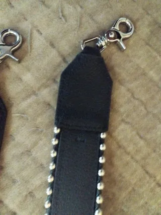 Correa de cuero con tachuelas metálicas. - Cierre de mosquetón. - Detalle de alas plateadas.