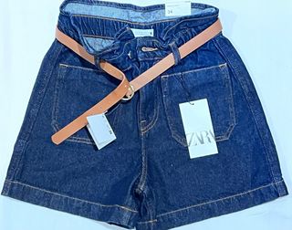 Shorts de mezclilla con cinturón. - Diseño paperbag. - Cinturón de cuero sintético. - Bolsillos delanteros.