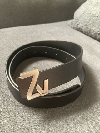 Elegante cinturón de la marca Zadig & Voltaire. - Hebilla metálica con diseño distintivo. - Acabado en cuero negro.