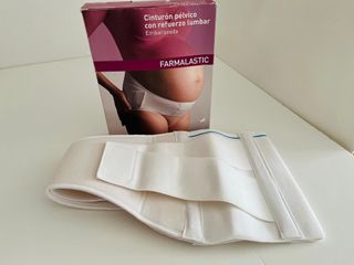 Cinturón pélvico Farmalastic con refuerzo lumbar para embarazadas. Está en perfecto estado, muy poco uso. - Talla L (ajustable mediante velcro y elástico así que realmente vale casi para cualquier talla) - Diseño cómodo y adaptable. - Refuerzo lumbar para mayor soporte.