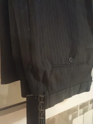 Pantalón de vestir para hombre con un diseño elegante y moderno. - Raya vertical fina. - Cierre de botón y cremallera. - Trabillas para cinturón.