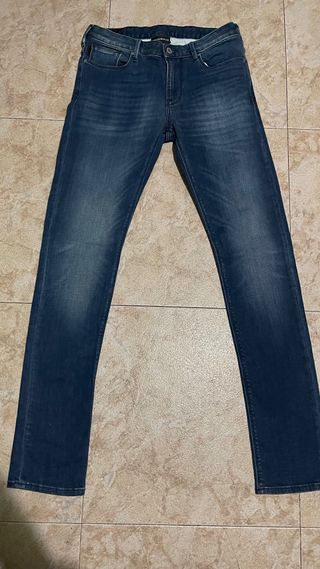 Vaqueros de la marca Emporio Armani en color azul. Talla 36 no se han usado. - Diseño clásico. - Cintura con trabillas para cinturón. - Cierre de cremallera y botón.