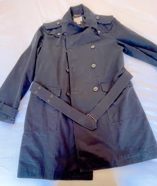 Gabardina / trench A|X Armani Exchange original. Sin uso, solo almacenada. Doble botonadura, cinturón, charreteras y puños ajustables. Exterior 100% algodón y forro 100% poliéster. Color negro. Medidas en plano: hombros 49 cm, pecho (sisa-sisa) 55 cm (contorno aprox. 110 cm), largo 93–94 cm, manga 65 cm (hombro–puño), bajo 62 cm (contorno aprox. 124 cm). Cinturón: largo total 140 cm. Primer ojal a 90 cm desde la hebilla. Por almacenaje puede tener leves marcas/pelusa (se va con vapor/rodillo). Preferible entrega en mano.