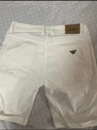 Bermudas de la marca Armani Junior en color blanco. - Diseño clásico. - Bolsillos delanteros. - Cintura con trabillas para cinturón.