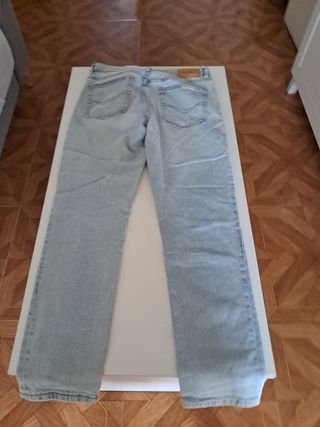 Vaqueros de corte clásico para hombre. - Tejido vaquero resistente. - Cintura con trabillas para cinturón. - Bolsillos delanteros y traseros.