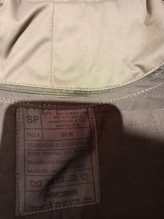 Gabardina impermeable del ejército sin estrenar. Talla 50 (M-L) es desmontable y se le quita el forro de dentro para lavarlo. Dispone de bolsillos ajustes, botones de repuesto y cinturón. Medidas de axila a axila 59,5 cm, largo 100 cm