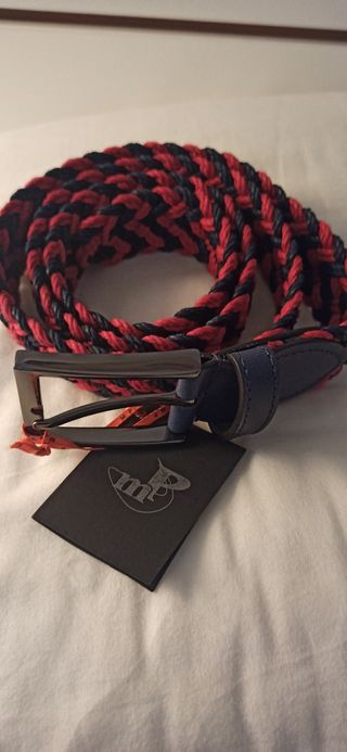 cinturon de hombre en tonos azules marino y rojo, trenzado. Material: cuero y algodón Sin estrenar