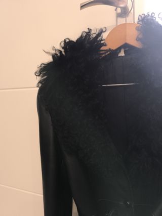 Elegante chaqueta de cuero de tres cuartos. Cuenta con un cinturón para ajustar la cintura y detalles de pelo en cuello y puños. - Bolsillos. - Cinturón. - Cuello y puños con pelo.