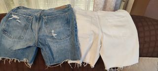 Tres pares de shorts vaqueros con un estilo desgastado y moderno. - Diseño desgastado y con rotos. - Cintura con trabillas para cinturón. - Bolsillos delanteros y traseros.temgo mas cosas muy lindas en mi perfil hago envío por wallapop o recogida en persona cualquier duda puede consultar sin compromiso suelo responder pronto un saludo.