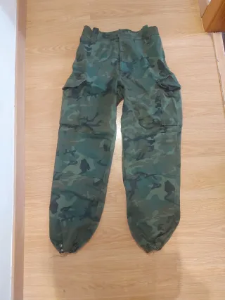 Pantalón de estilo militar con estampado de camuflaje. - Diseño con múltiples bolsillos. - Cintura con trabillas para cinturón. - Puños ajustables en los tobillos. Medidas cintura: 80 cm