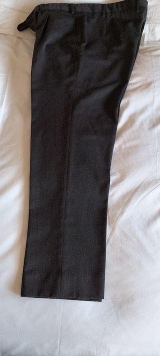 Pantalón de vestir para hombre, confeccionado en lana y poliester de color gris. - Corte clásico. - Cintura con trabillas para cinturón. - Cierre de cremallera y botón. Talla 52. Largo 106 cm. Sí haces un LOTE a tu gusto con varias cosas de mi escaparate te hago precio especial.