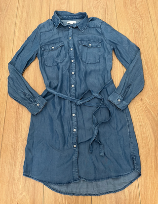 Vestido camisero en tejido denim suave, comodo y ligero (no es rígido), con cinturón a juego para ajustar la cintura. Manga larga, botones delanteros y bolsillos en el pecho. ✨ Color: Azul vaquero ✨ Marca: Springfield ✨ Talla: 36 ✨ Medidas: 38cm hombros / 49cm axilas / 80cm largo / 47cm cintura