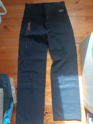 Pantalón marca reciclaje de estilo urbano con un llamativo diseño de graffiti en el bolsillo trasero. Talla 40 Descatalogados Usados una vez - Bolsillo trasero con estampado de graffiti. - Detalle de bolsillo lateral. - Cintura con trabillas para cinturón.