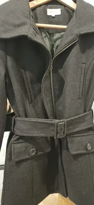 Abrigo gris con cinturón