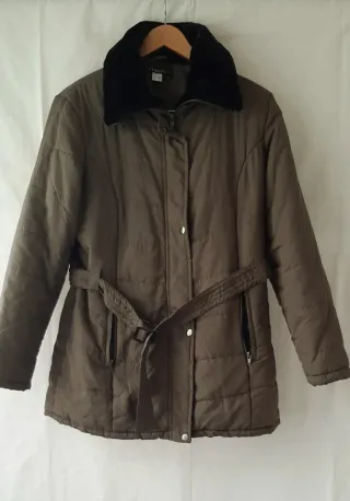 Chaquetón elegante y abrigado, perfecto para el frío. Con cierre de cremallera y botones a presión. - Diseño acolchado. - Cuello con detalle de pelo. - Incluye cinturón para ajustar la cintura. - Bolsillos con cremallera. *Sólo hago envíos. No entrego en persona.