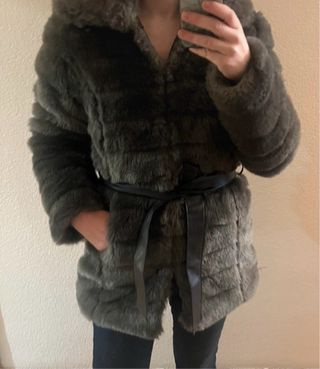 Chaquetón de pelo gris con cinturón