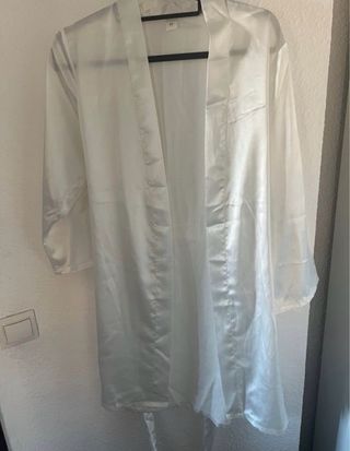 Preciosa bata blanca nueva a estrenar ideal para sentirse cómoda y elegante. Es de manga 3/4 y tiene un cinturón para ajustar a la cintura. - Talla M - Color blanco Realizo lotes ropa en mi perfil Consulta cualquier duda